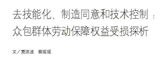 近日,北京航空航天大學(xué)人文社會科學(xué)學(xué)院(公共管理學(xué)院)賈洪波教授、博士研究生蔡瑤瑤發(fā)表《去技能化、制造同意和技術(shù)控制:眾包群體勞動保障權(quán)益受損探析》一文,被《人大復(fù)印報刊資料·勞動經(jīng)濟(jì)與勞動關(guān)系》so米體育-NBAso米直播第9期全文轉(zhuǎn)載